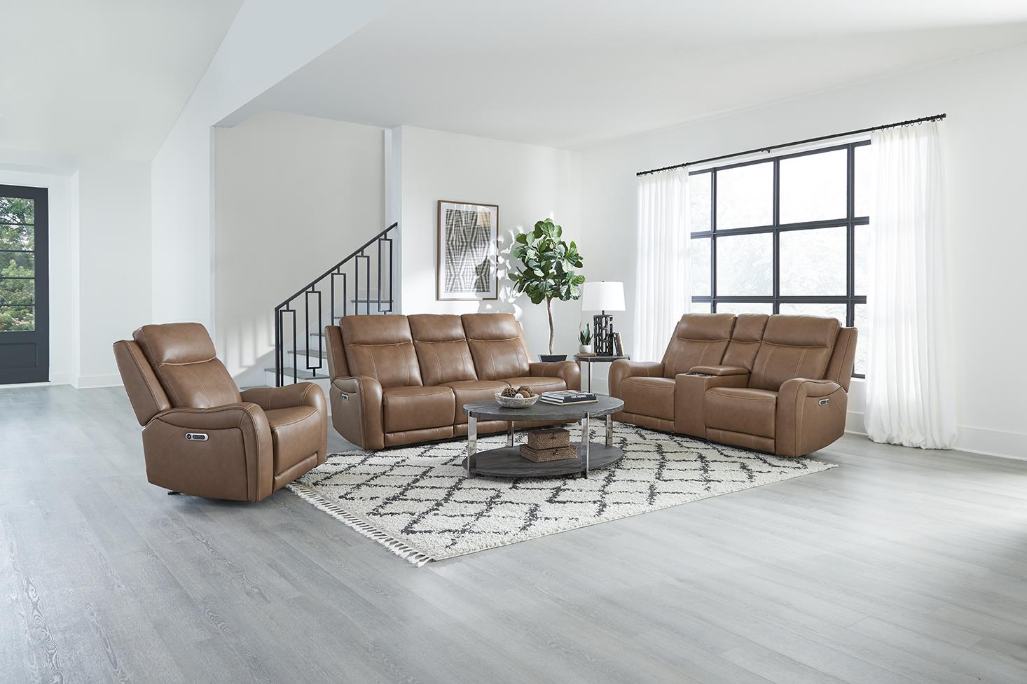 Experience the ultimate in comfort and style with the Haywood Power Sofa. Wrapped in luxurious Butternut leather, this sofa offers a modern twist on classic motion upholstery. Enjoy the soft, contoured arms and eye-catching stitching as you relax in style. With a convenient USB charger and power headrest, your comfort is ensured.100%leather