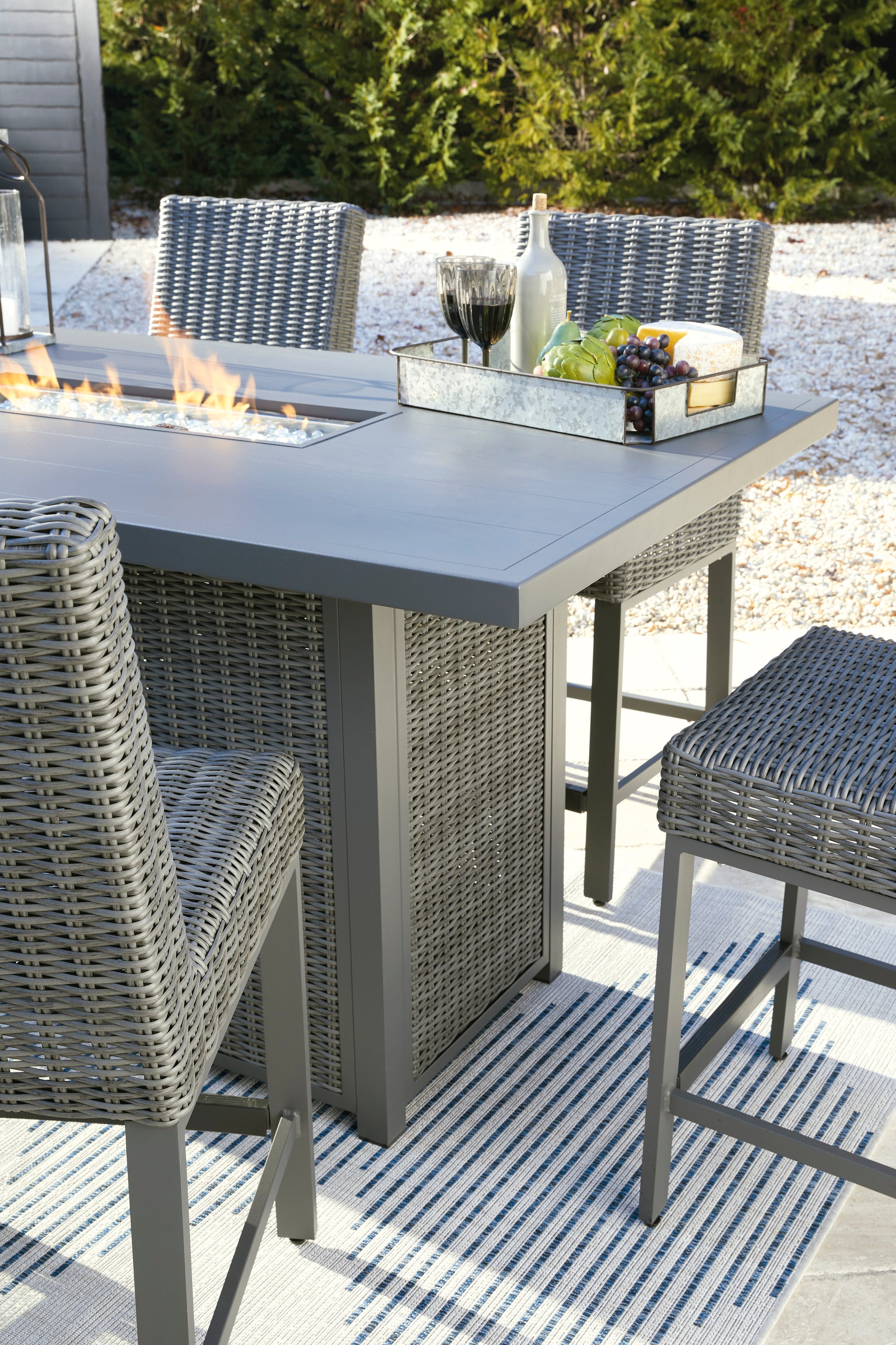 Elevate your outdoor space with this chic and versatile dining set, featuring a neutral gray finish and sleek aluminum frame. The built-in fire pit, adorned with glass beads, adds a touch of drama while hidden storage shelves and a weather cover make spontaneous gatherings a breeze. Foam cushioned seats ensure comfort and a sleek aesthetic.